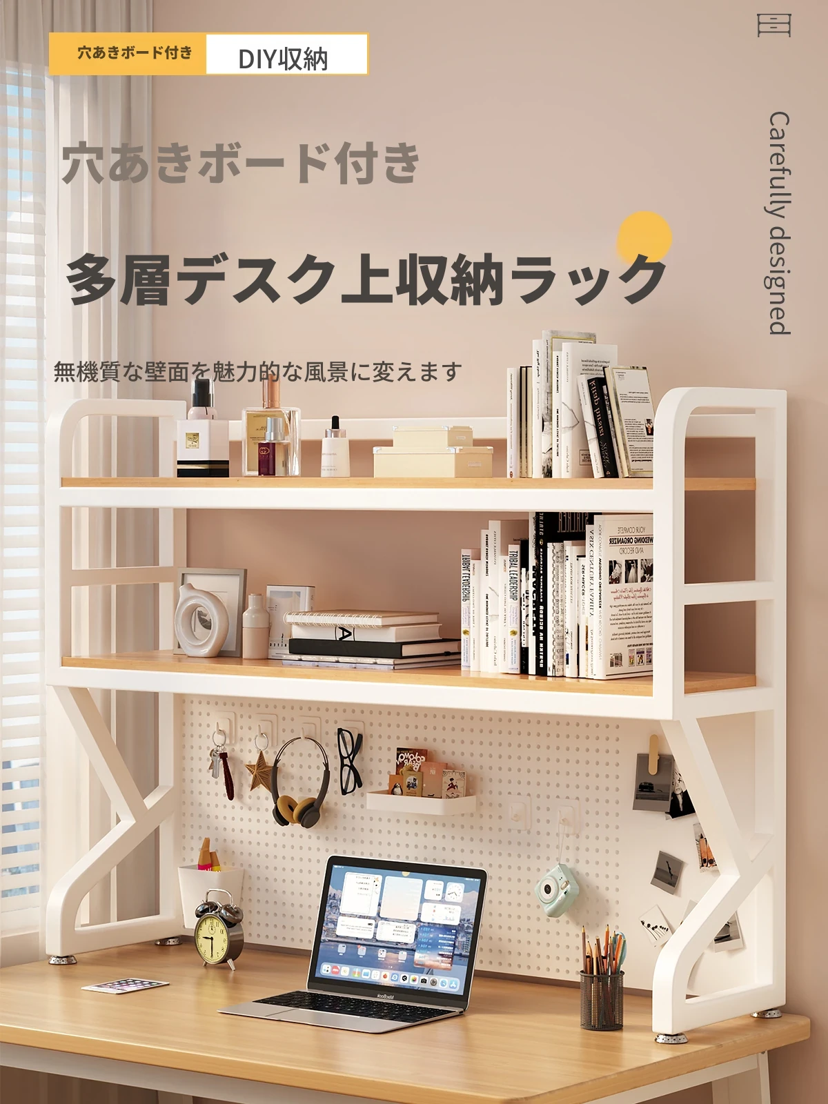 デスク上収納ラック・多層型・便利な穴あきボード付き・オフィスや勉強に最適・学生向けデスク・パソコン用スタンディングデスク・アイアン製・おしゃれで実用的な本棚です!