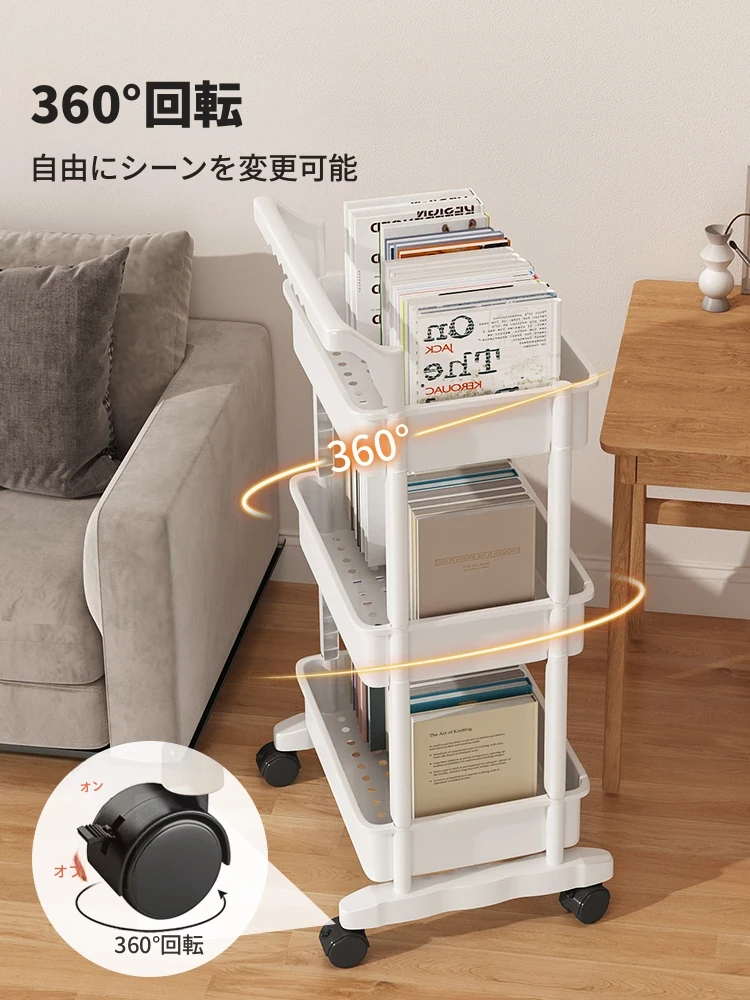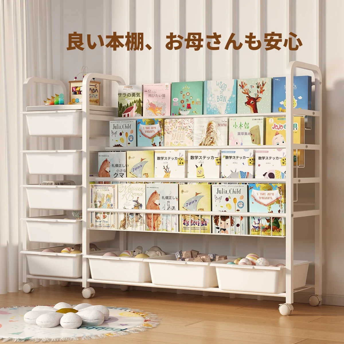 移動式多層書架&収納カート - 子供のおやつ収納に最適!便利なキャスター付き、シンプルなアイアンデザインでお部屋がスッキリ。家庭用にピッタリな書籍や小物収納にも!
