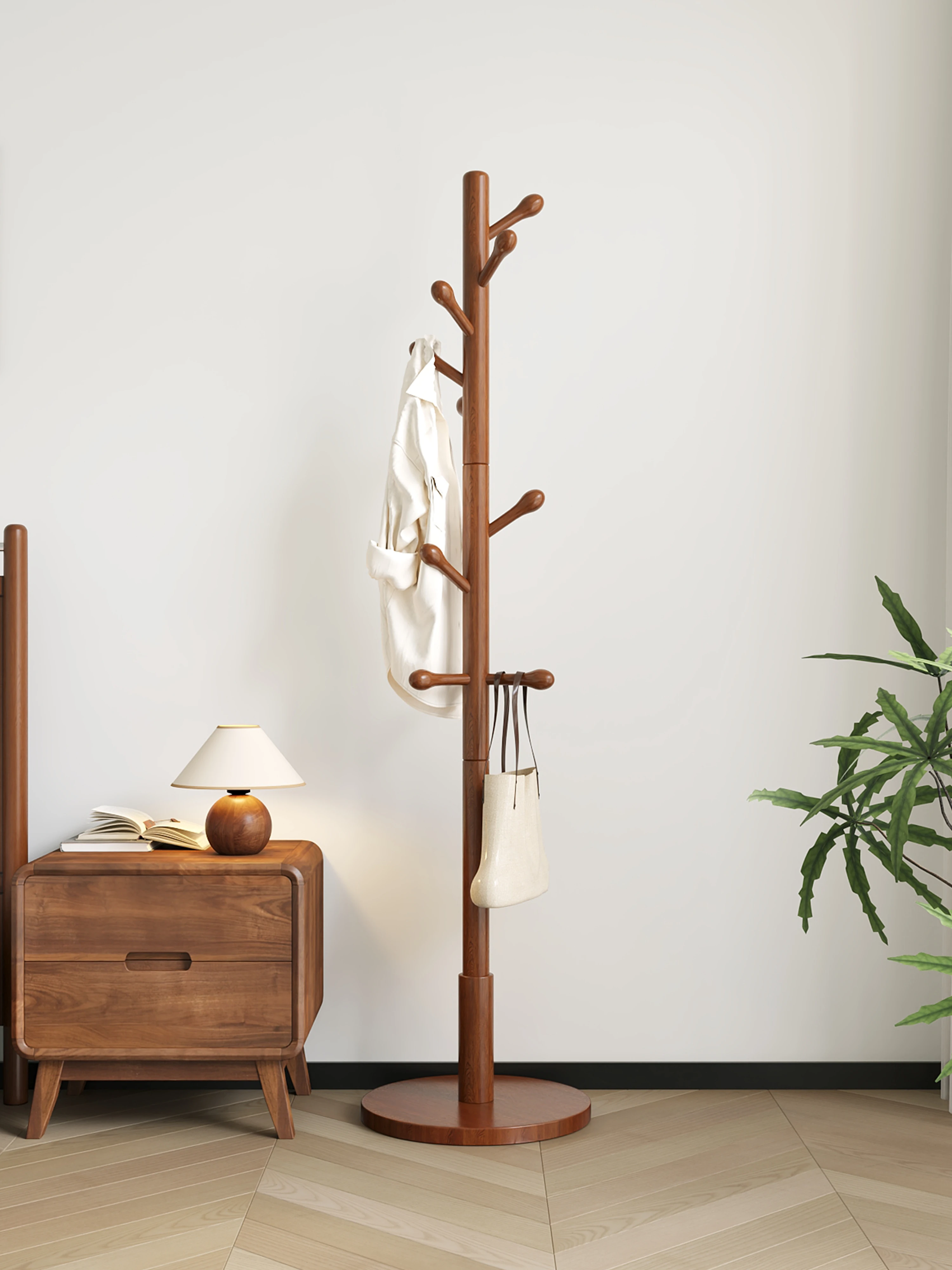 三夢の無垢材コートハンガー - おしゃれな立型衣類&帽子ラック!寝室やリビングルームにぴったりの高品質なワックスウッド製。美しいインテリアを演出し、バッグや衣類をスッキリ収納。あなたの家にスタイルを添えます!