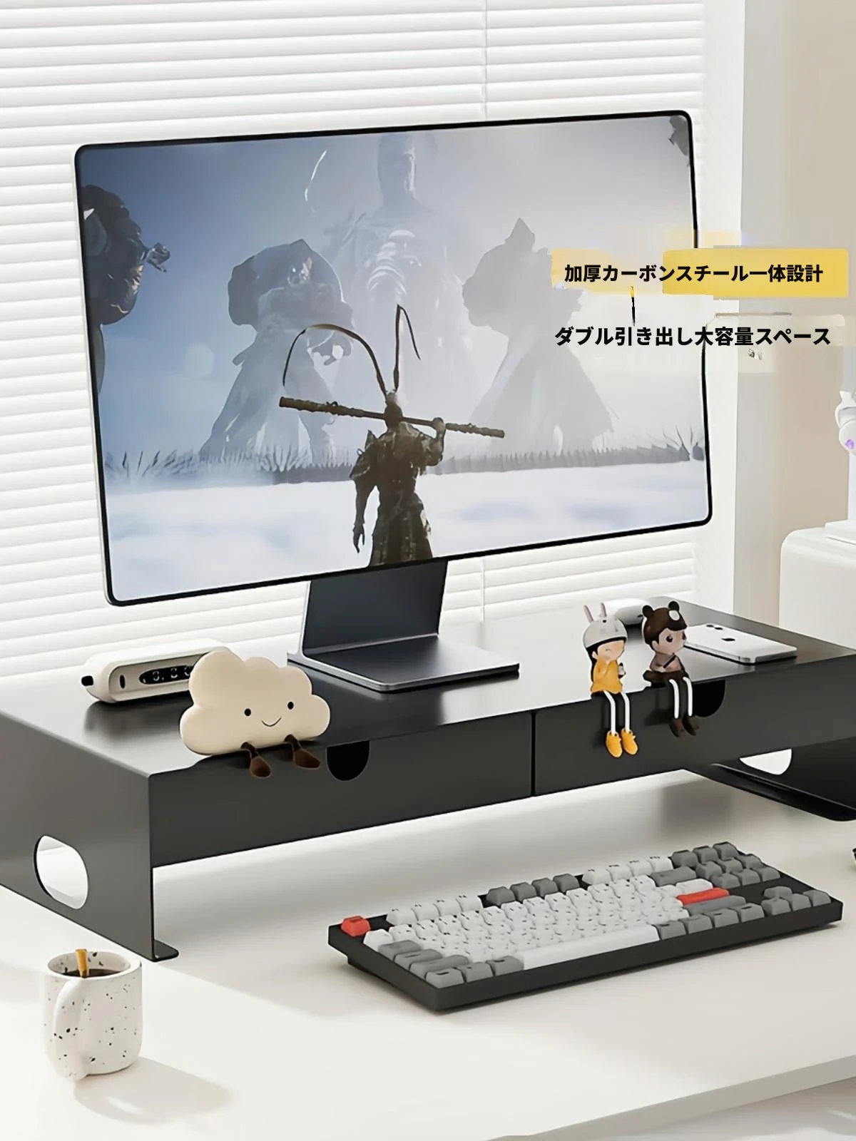 三夢デスクパソコン用昇降スタンド - ディスプレイ置き場・オフィスデスクに最適!引き出し付きの金属収納ラックで、スッキリ整理整頓。快適な作業環境を実現!