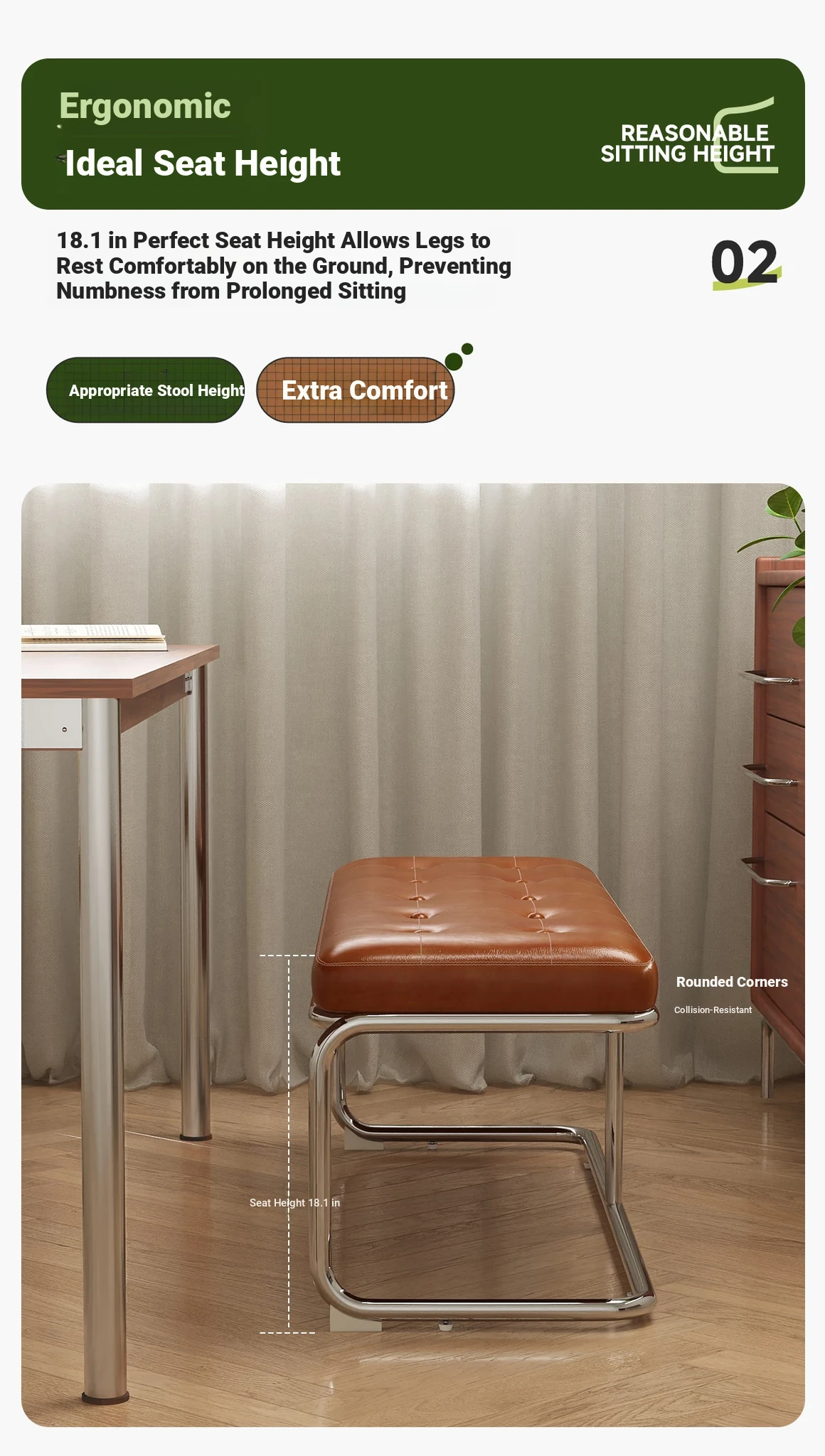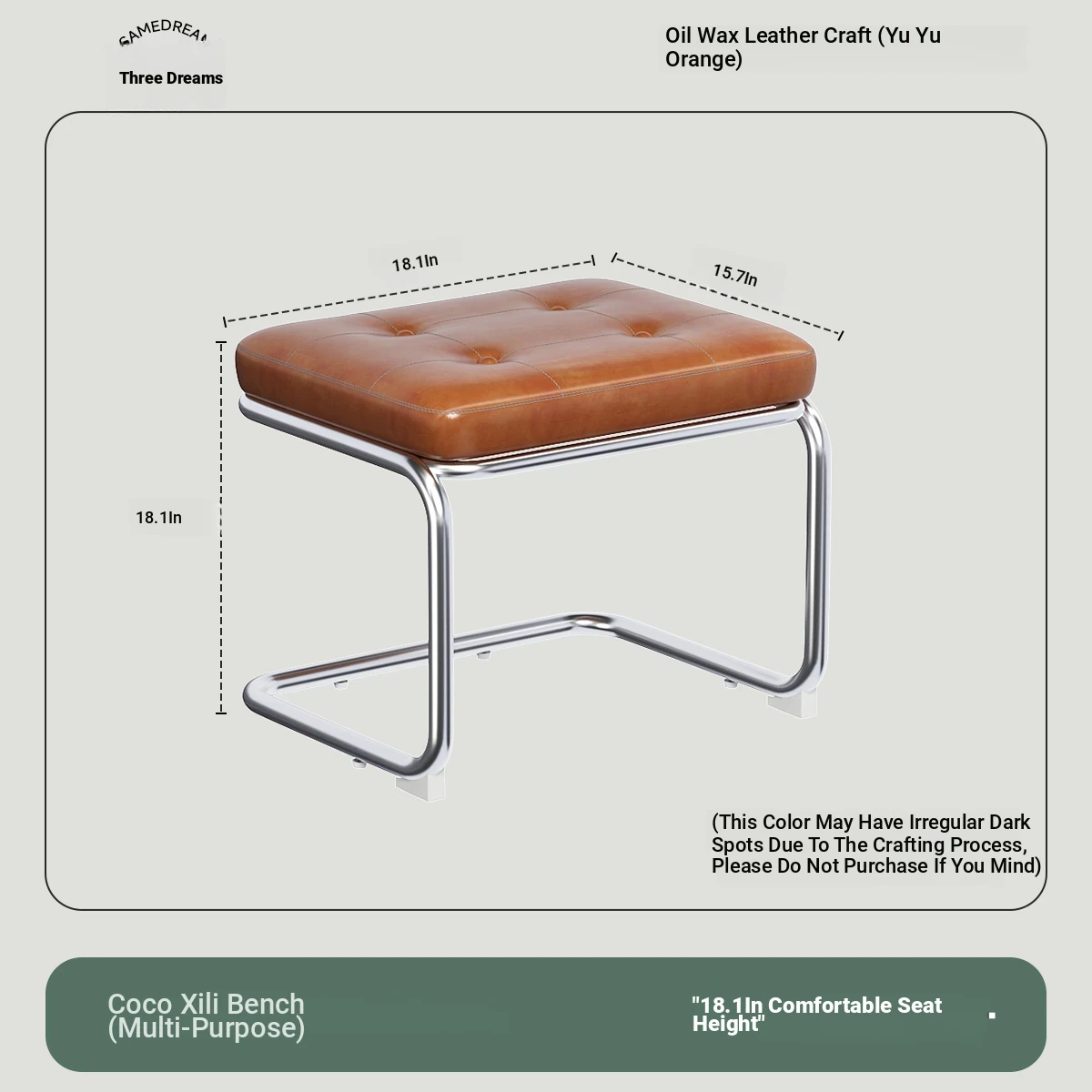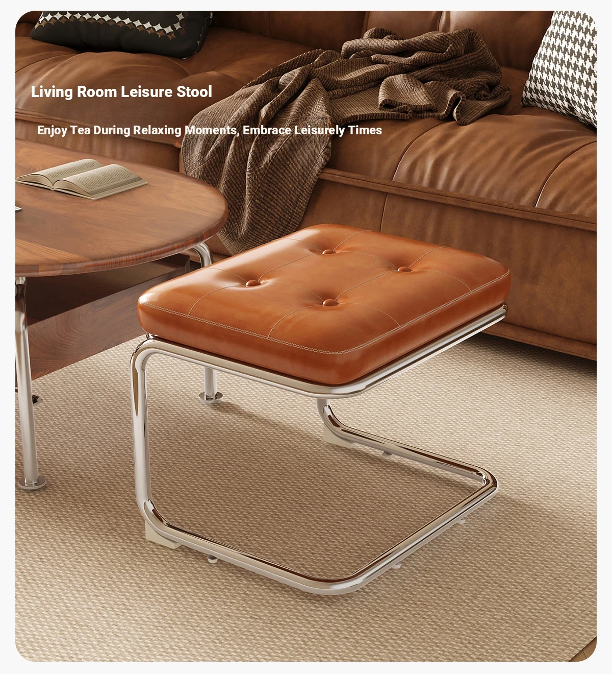 [Single Stool -18.11in] Ember Orange, Oil Wax Craft Leather