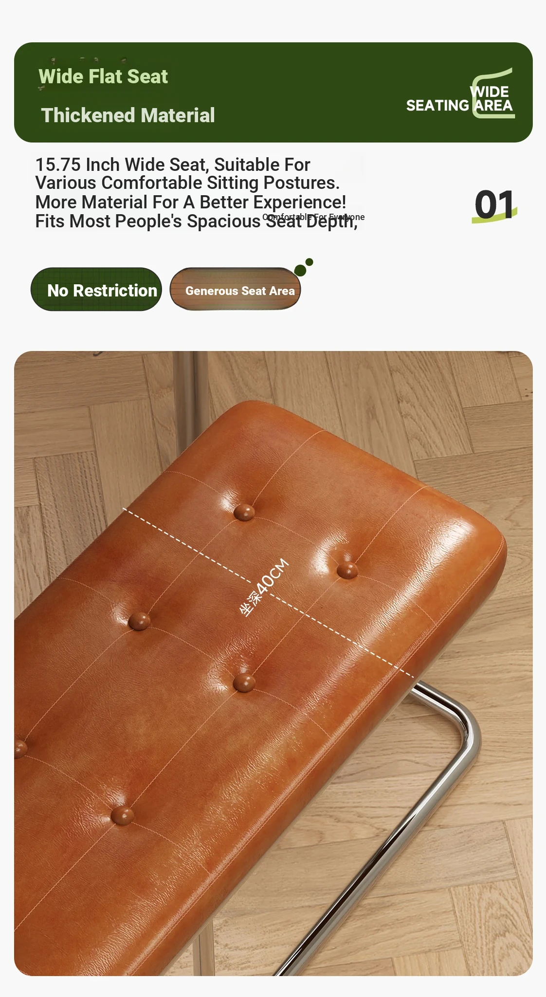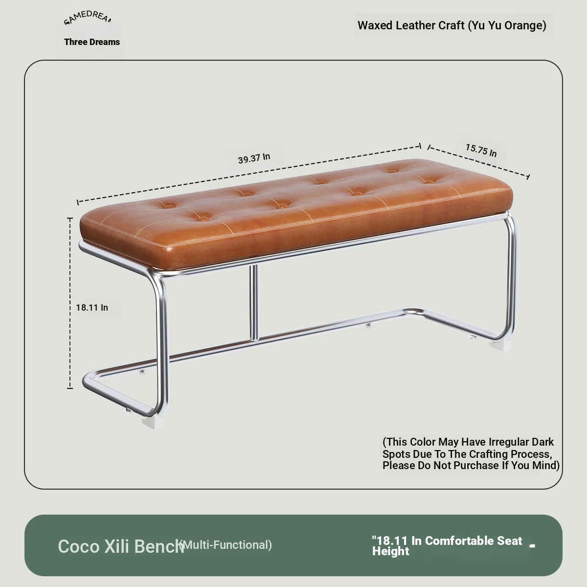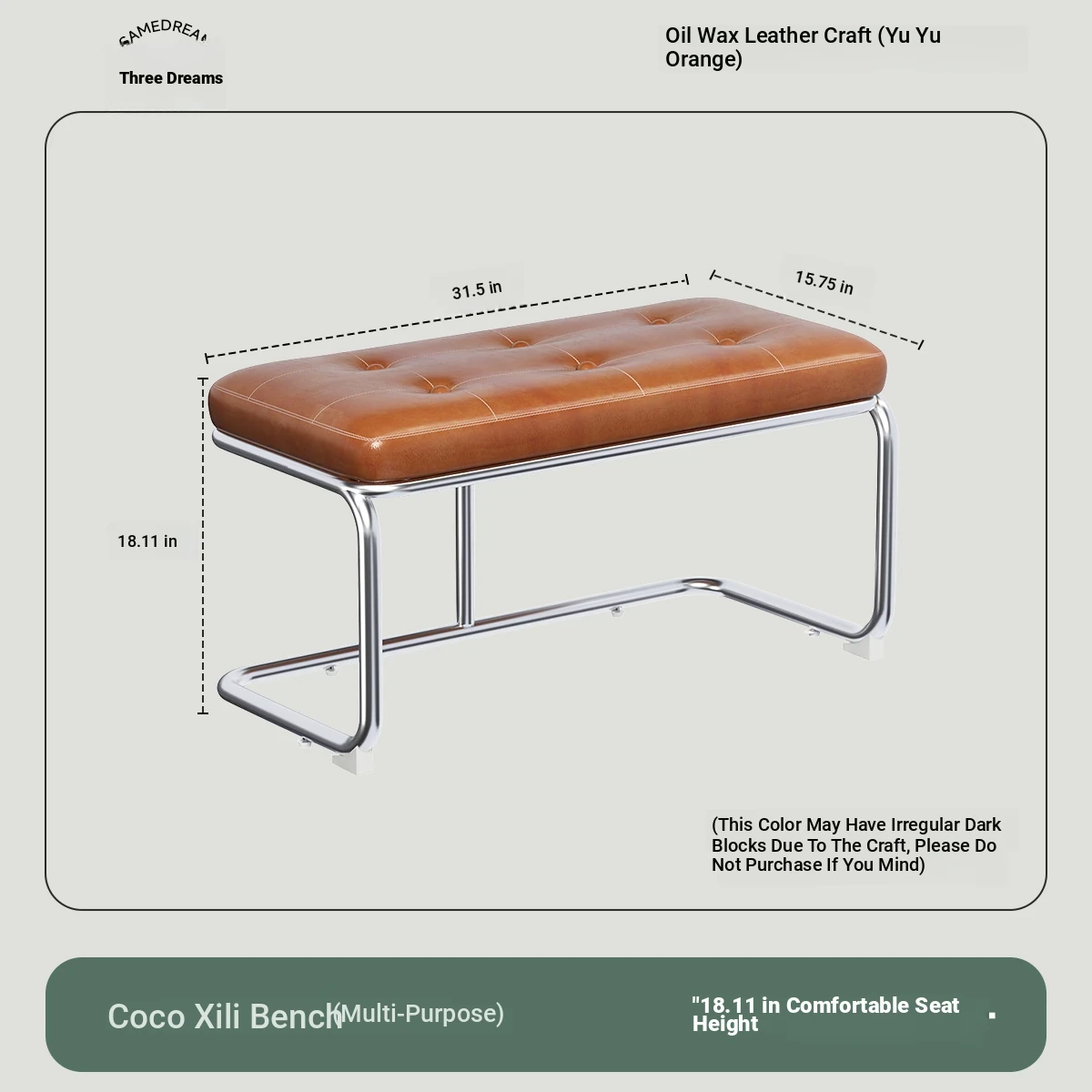 [Bench -39.37in] Ember Orange, Oil Wax Craft Leather
