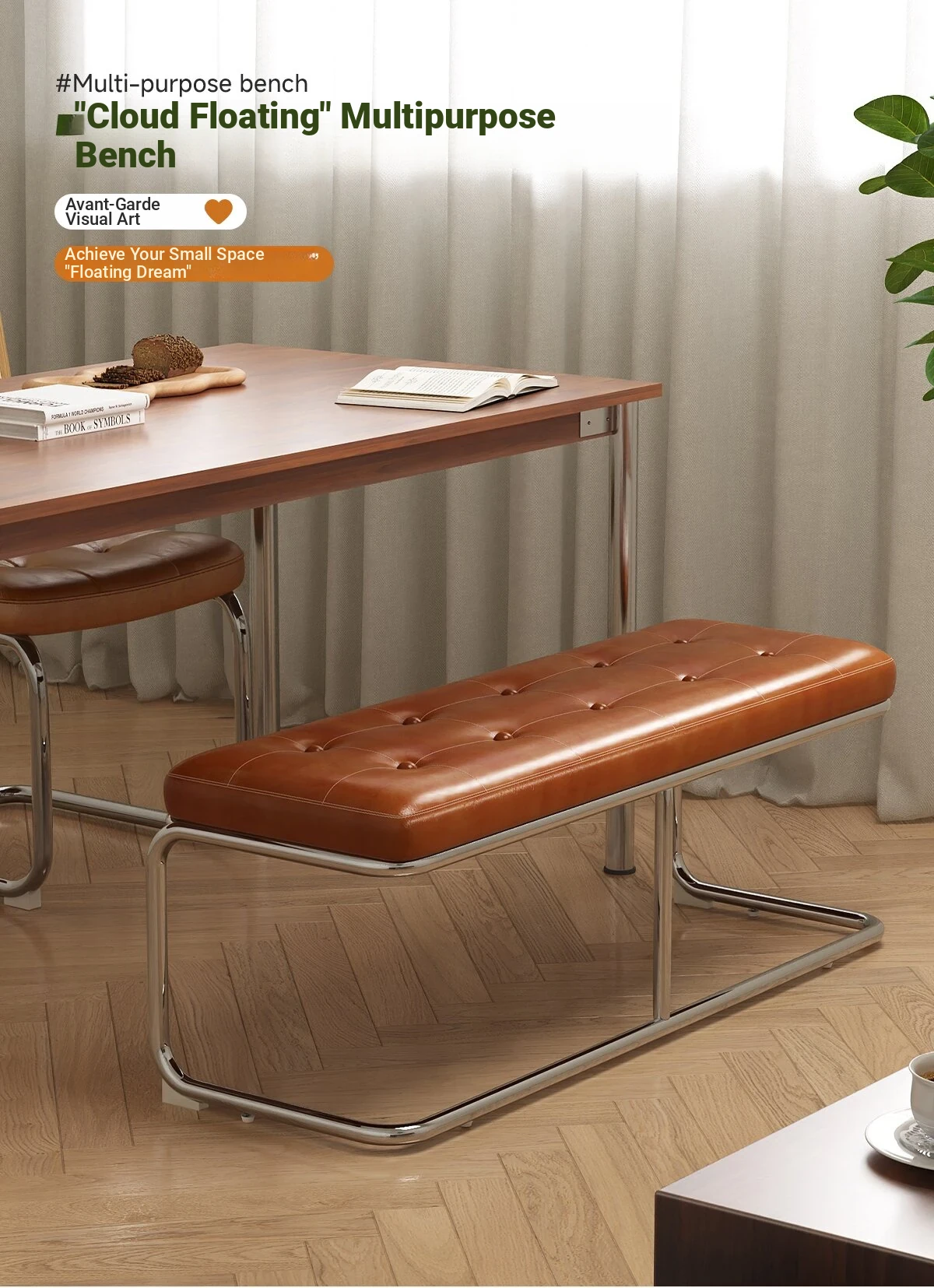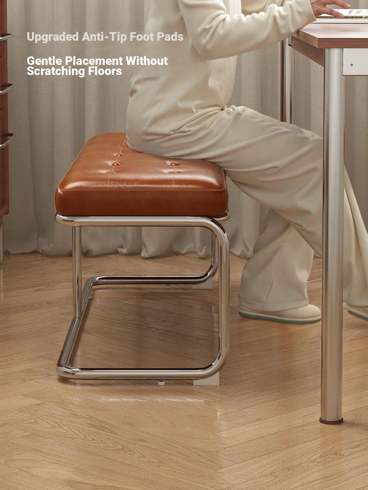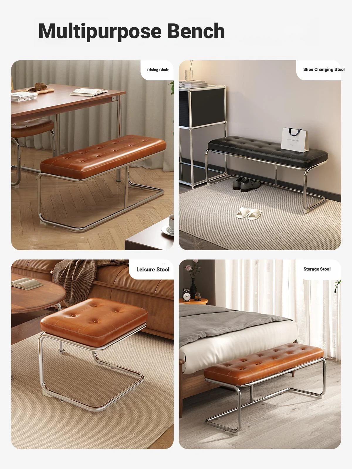 "Elegant Space-Saving Vintage Dining Chair - Sleek Stainless Steel Bench for Home Use, Perfect as a Shoe Changing Stool or Dining Table Seating"
