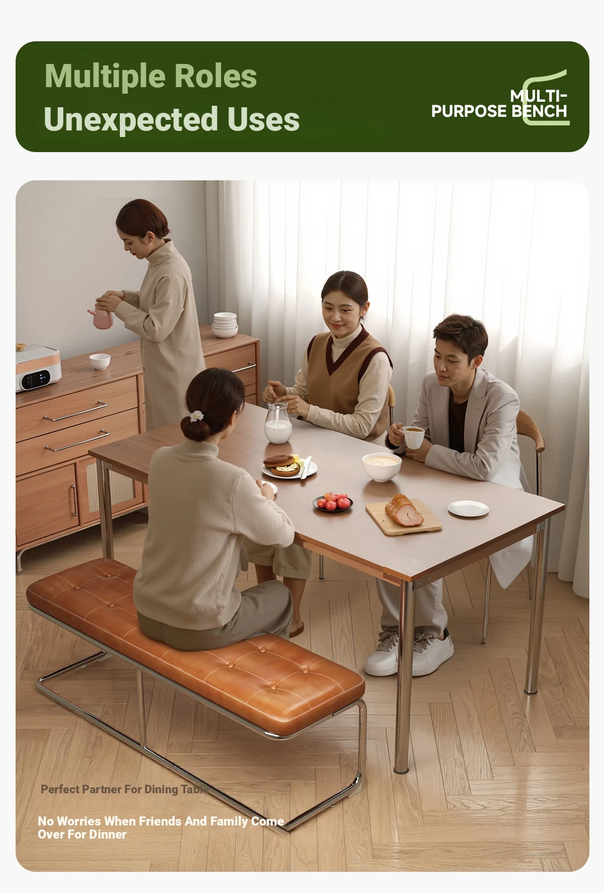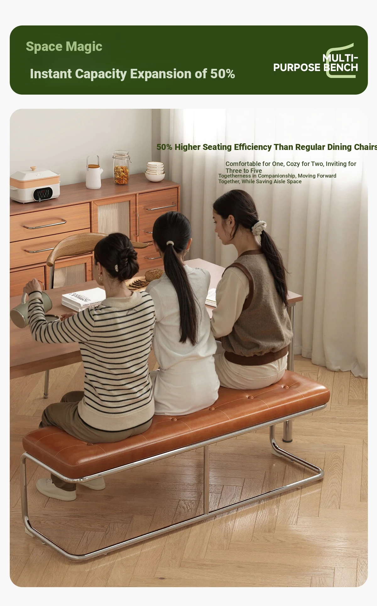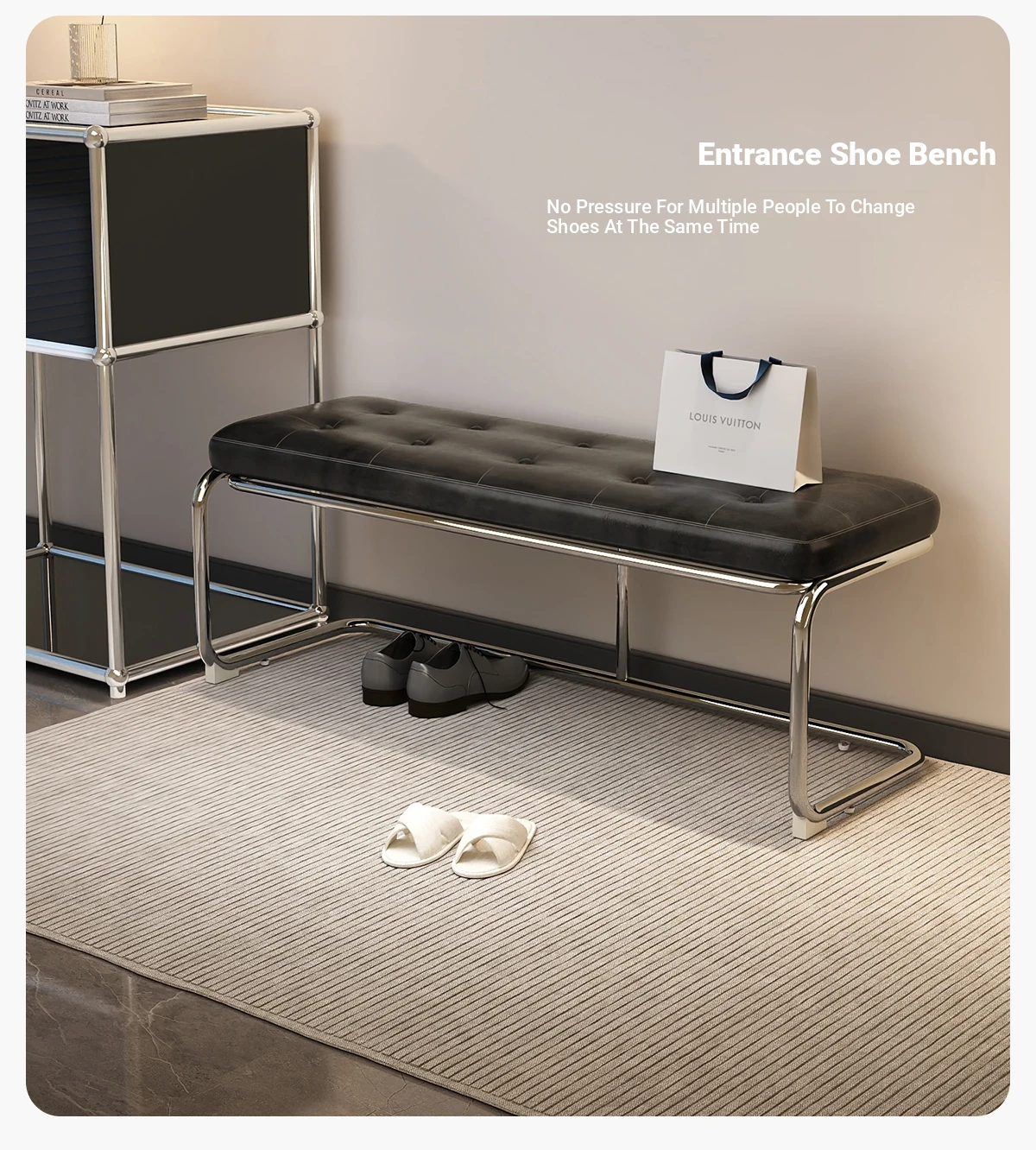 "Elegant Space-Saving Vintage Dining Chair - Sleek Stainless Steel Bench for Home Use, Perfect as a Shoe Changing Stool or Dining Table Seating"