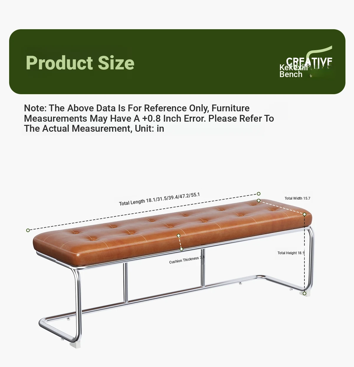 [Bench -55.12in] Ember Orange, Oil Wax Craft Leather