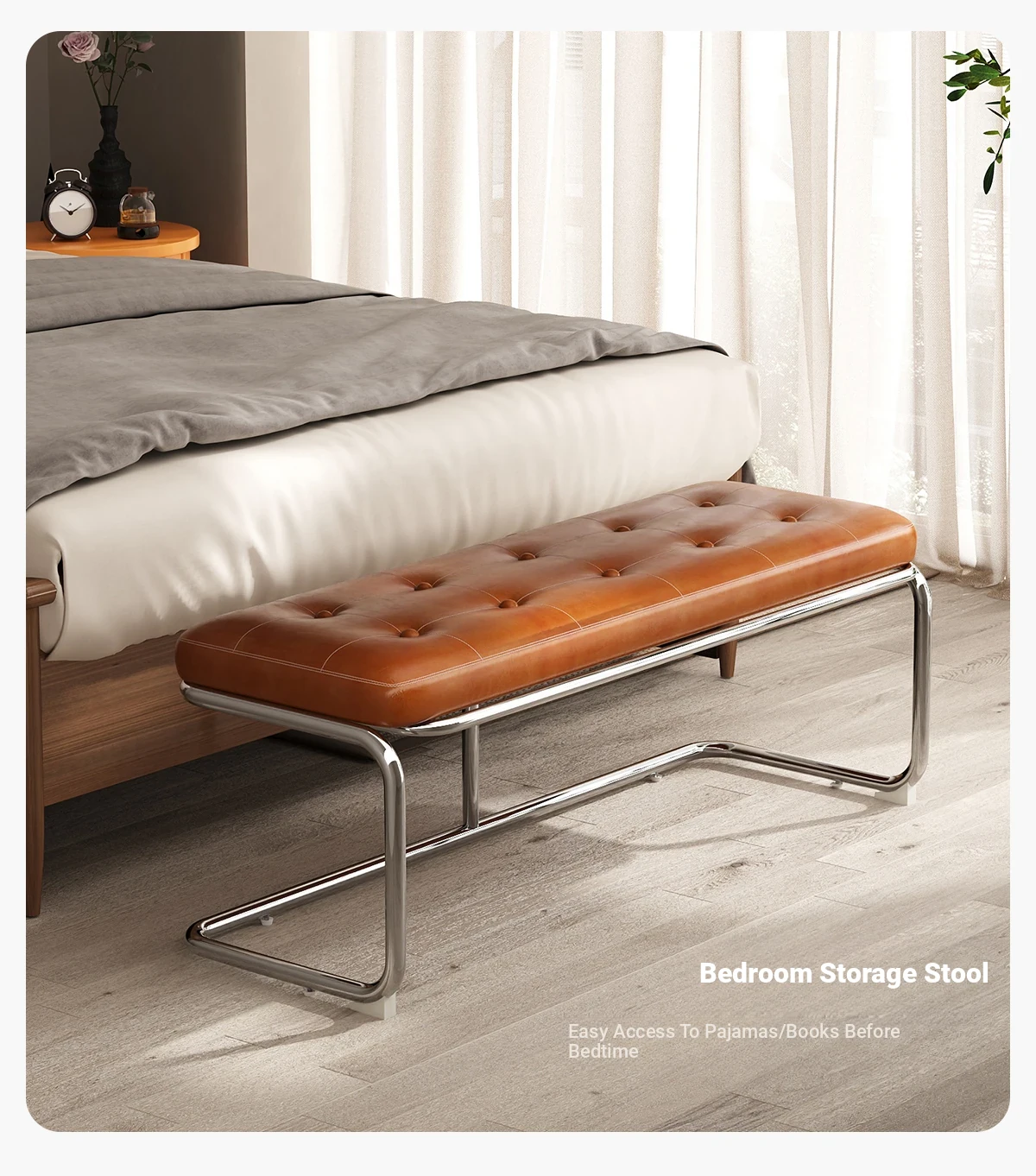 [Bench -31.50in] Ember Orange, Oil Wax Craft Leather